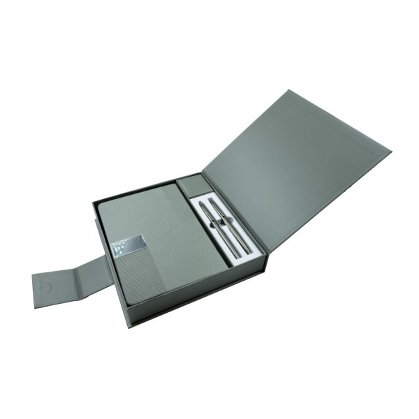 Set cadou stilou + pix + agenda A5 Office-Cover, metalic, grafit cu striatii, cutie cadou