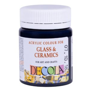 Vopselele Decola pentru sticlă și ceramică sunt pe bază de apă, deci nu au mirosuri neplăcute, precum cele pe bază de lac. Pentru aplicare, veți avea nevoie de o pensulă sintetică destul de moale, deoarece consistența este semi-translucidă. Recomandăm aplicarea a 2 straturi de vopsea, deoarece un singur strat nu are o acoperire suficientă și este puțin transparent. Este întotdeauna mai bine să folosiți mai întâi culori deschise din același motiv. Ca avantaj, puteți obține efecte de glazurare deosebite cu aceste vopsele. Culorile sunt foarte ușor de amestecat și își păstrează strălucirea după uscare. În plus, nu își schimbă deloc aspectul după uscare. Așadar, îți vopsești proiectul, îți place și poți fi sigur că va rămâne la fel. Strălucirea lucioasă va rămâne, deci nu este nevoie de lac. Timpul de uscare completă este de aproximativ 3 ore (producătorul recomandă 12 ore), după care puteți aplica căptușeli și puteți aduce o notă finală lucrării de artă. De asemenea, se recomandă coacerea pe termen scurt (20-30 de minute) la temperaturi scăzute (aproximativ 100°C). Pentru vopsele translucide cu efect de vitraliu, vă rugăm să consultați Decola: Vopsele cu efect de vitraliu, 20 ml Culori individuale – 50 ml.