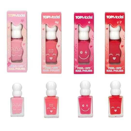 Distractie cu ojele de unghii cu TOPModel: Oja este pe baza de apa si usor de Indepartat. Sticlutele au un maner sferic si o fata draguta imprimata pe ele. 4 culori: coral, roz deschis, roz si rosu.