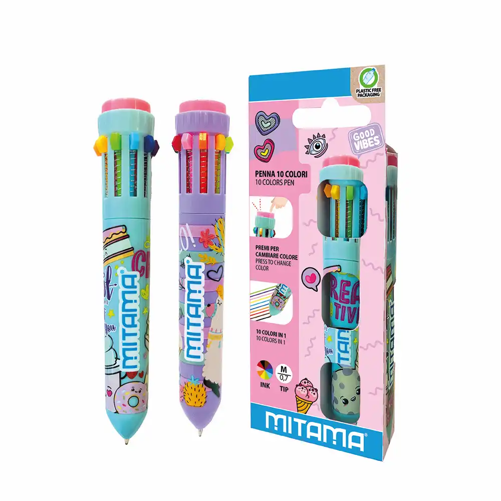 Pixul Mitama cu 10 culori este perfect pentru cei care iubesc diversitatea si creativitatea in scris. Cu un design atragator inspirat de fete, acest pix va aduce un strop de culoare in orice activitate de scriere.