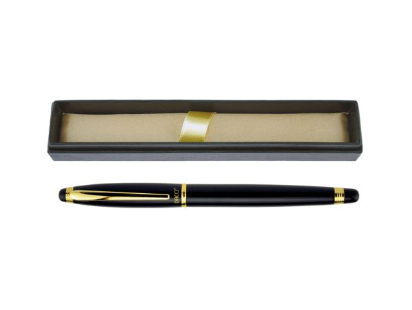 - Corp din metal: stiloul are un corp robust din metal, acoperit cu un finisaj auriu și negru strălucitor, oferind un aspect luxos și o durabilitate sporită.
