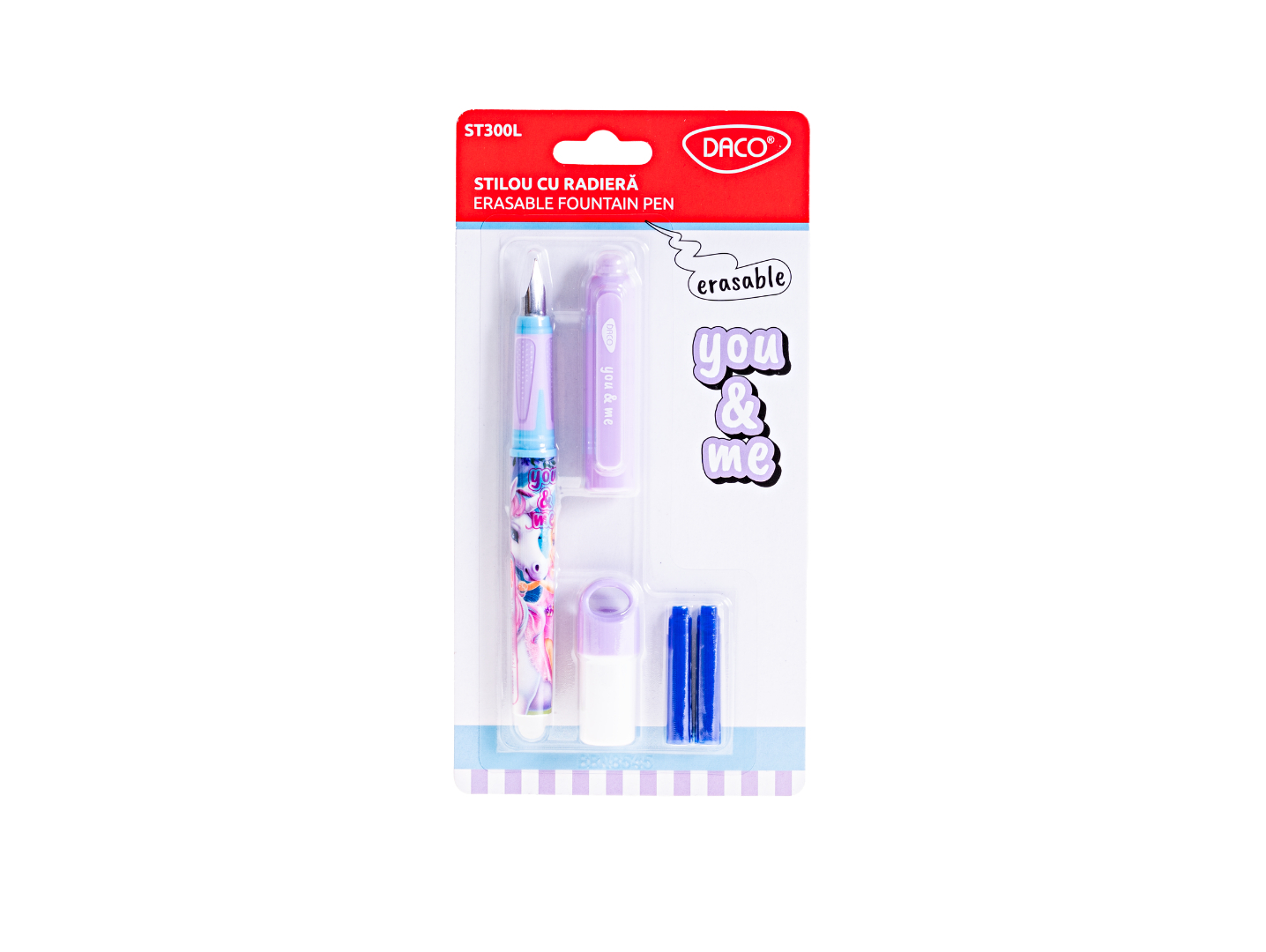 Stilou cu radieră You&Me Lila ST300L DACO – peniță F din iridiu, set complet